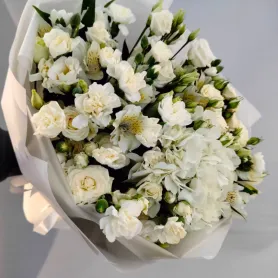 Букет «Белое облачко» - это нежная и воздушная композиция из белых цветов, которые символизируют чистоту, нежность и безмятежность.