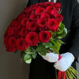 Букет из 51 красной розы «Любовь» - это великолепное проявление страсти и сильных эмоций. Каждая роза в этом букете символизирует глубокую и искреннюю любовь. Этот букет идеально подходит для особых моментов, таких как дни рождения, юбилеи, свадьбы или просто для того, чтобы выразить свои чувства. Красные розы являются классическим символом любви и романтики, и букет из 51 розы только усиливает это впечатление, создавая впечатляющий и незабываемый образ.