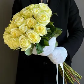 Белые розы в букете символизируют чистоту, нежность и невинность. Они являются классическим выбором для выражения искренних чувств, таких как любовь, уважение и почтение.
